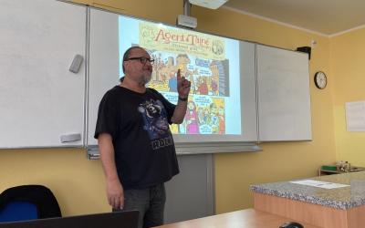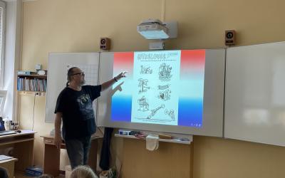 3. A po vynikajícím obědě ve školní jídelně jsme měli komiksový workshop pro šesté ročníky, kde jsme kromě vymýšlení a kreslení komiksů prolétli i historií obrazového vyprávění od pravěku přes starovkyý Egypt a středověk až po dnešek.