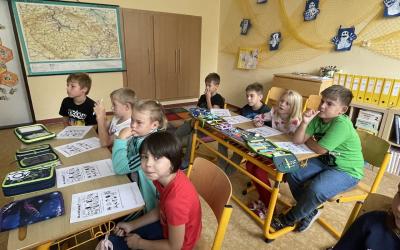 1. Nejdřív jsme si společně s druhou + třetí třídou kreslili komiksy a povídali o tom, jak se mají dělat.
