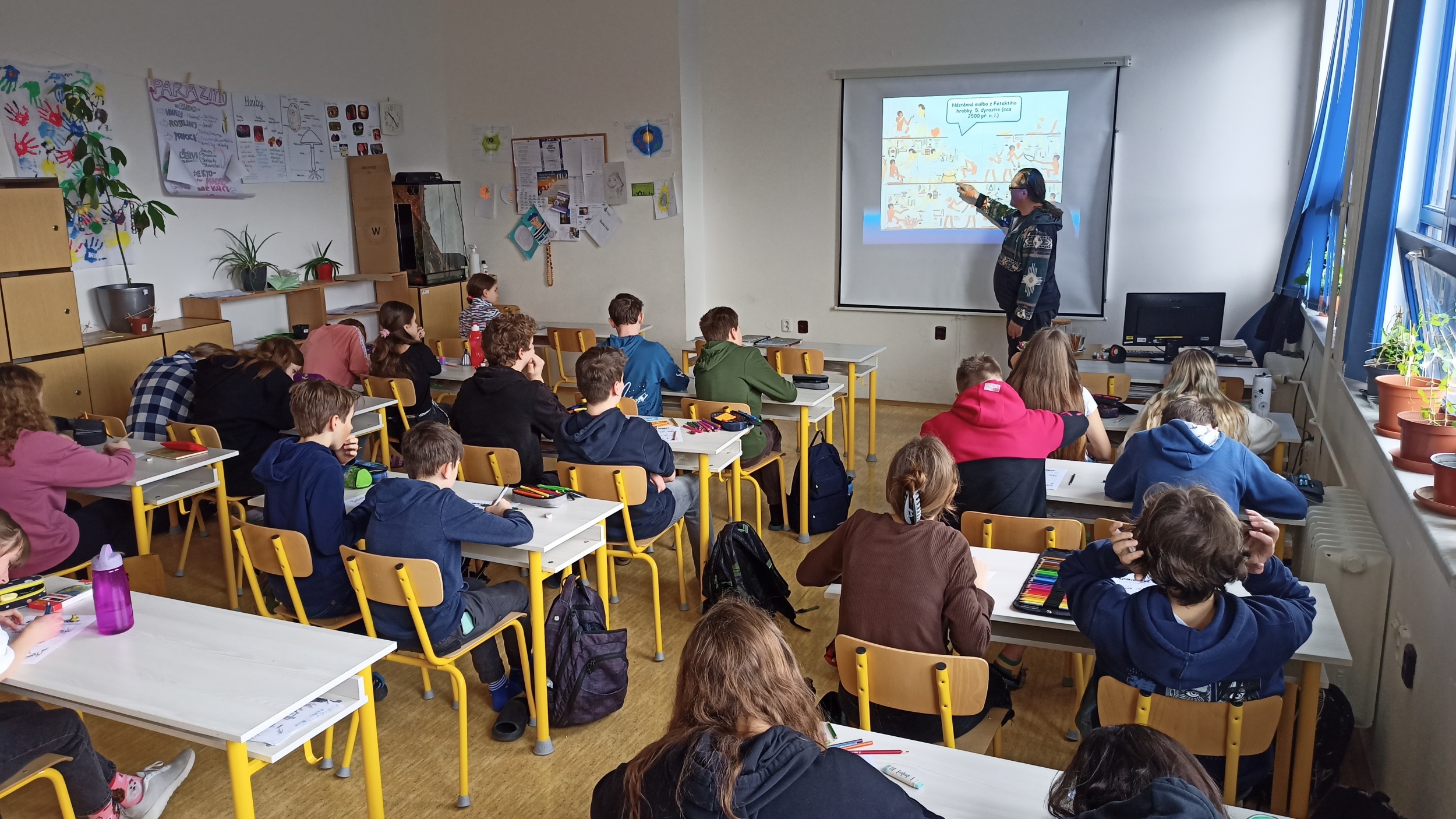 Celý den svítili sluníčko a my byli ve třídě s okny na jihovýchod, a bylo krásně a studenti a studentky kreslili ještě krásněji.