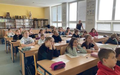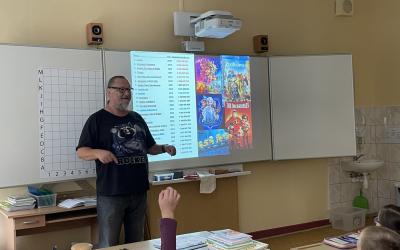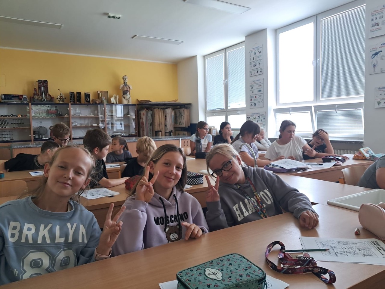 3. A po vynikajícím obědě ve školní jídelně jsme měli komiksový workshop pro šesté ročníky, kde jsme kromě vymýšlení a kreslení komiksů prolétli i historií obrazového vyprávění od pravěku přes starovkyý Egypt a středověk až po dnešek.