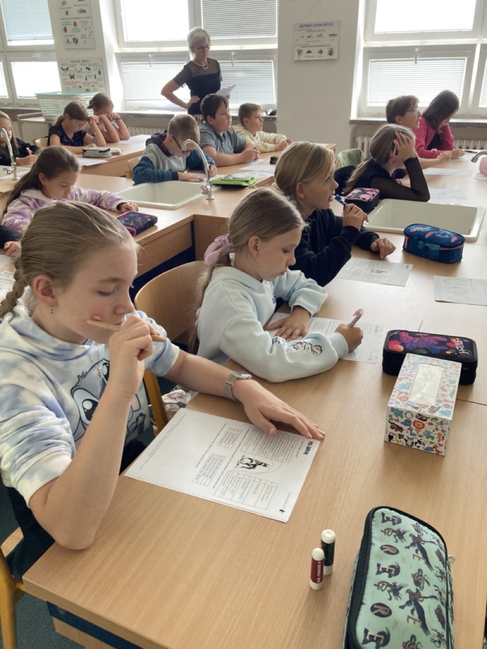 2. Potom jsme se čtvrťákama a páťákama (píšu trošku nespisovně, ale od srdce :-) ) měli poznávací detektivní workshop spojený s literární dílnou.