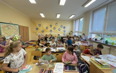 1. Nejdřív jsme si společně s druhou + třetí třídou kreslili komiksy a povídali o tom, jak se mají dělat.